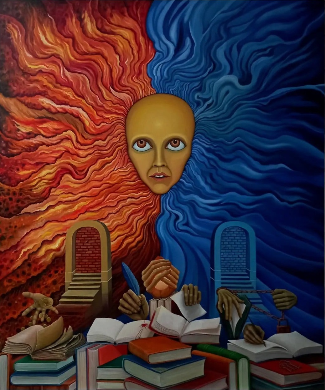 – ასეთი ნახატები დაკავშირებულია ადამიანის აზრებთან და სულთან. ისინი თავისით იბადება და შემდეგ იხატება ქაღალდზე. მაგალითად, როცა ვზივარ, მუზა თავისით მომდის, უცებ გონებაში იბადება რაიმე აზრი და მაშინვე ვიწყებ ხატვას. არ ვცდილობ რამის დამატებას ან წაშლას. მთლიანი ნახატი გონების კარნახით და ყველანაირი დაგეგმვის გარეშე მოდის და იქმნება.