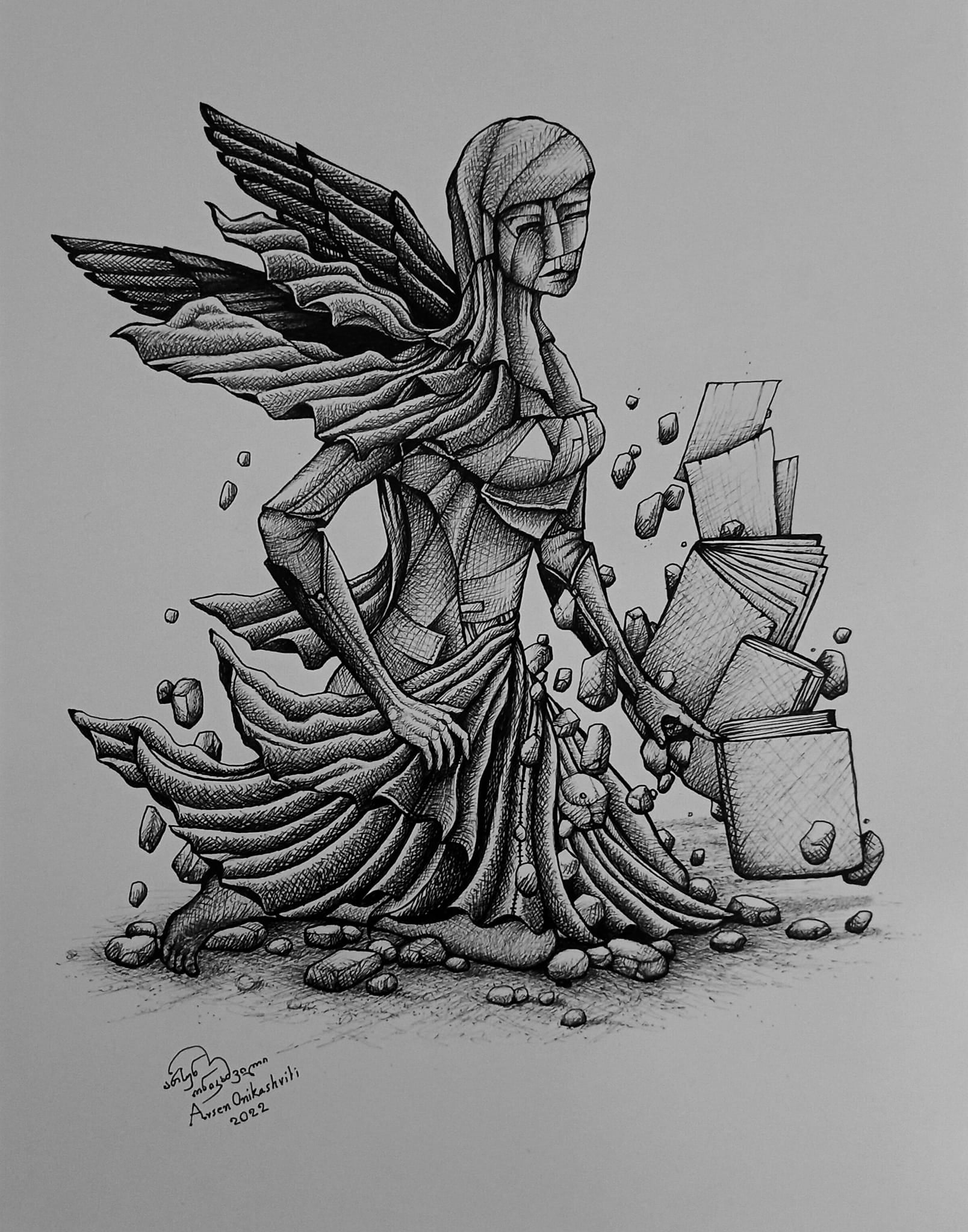– ვხატავ შავ-თეთრ ნახატებს ტუშით, ასევე შავი ფანქრით – რეალისტურ ნახატებს.