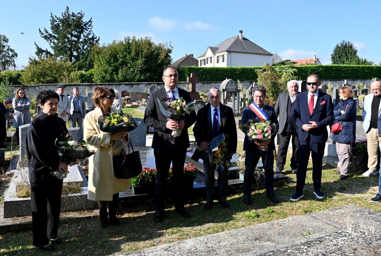 ქართული დელეგაციის წევრებმა ფრანგ სტუმრებთან ერთად ლევილის სასაფლაოს მემორიალი ყვავილებით შეამკეს.