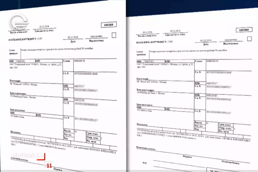 „ქრონიკამ“ მოიპოვა დოკუმენტი, რომლის მიხედვითაც ელენე ხოშტარიას ოჯახს 4 მილიონზე მეტი რუბლი ჩაერიცხა