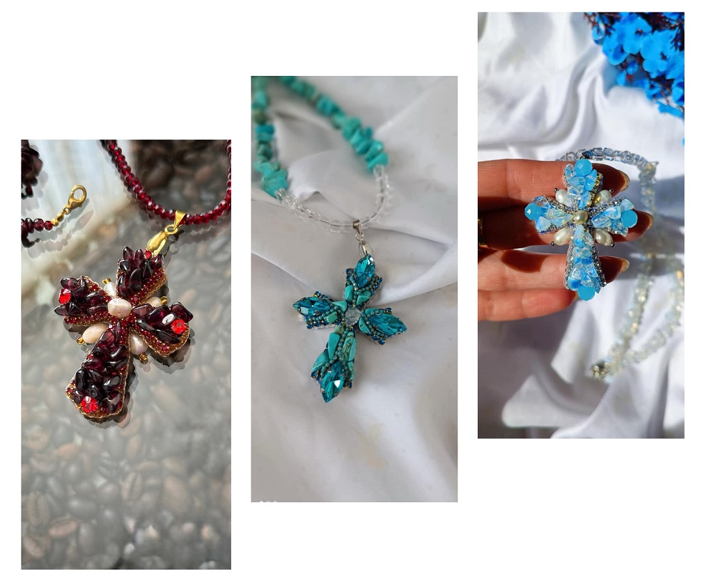 ასევე ვმუშაობ საავტორო ნამუშევრებზე, აქაც გამუდმებით სიახლეებს დავეძებ და მაქსიმალურად ვცდილობ ყველასგან განსხვავებული აქსესუარის შექმნას.