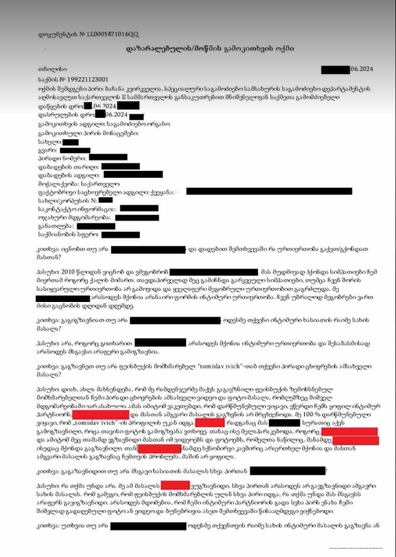 სპეციალური საგამოძიებო სამსახური, პირადი ცხოვრების ამსახველი ინფორმაციის უკანონოდ მოპოვების ფაქტზე, მოქალაქის მიმართ გამოძიებას აწარმოებს