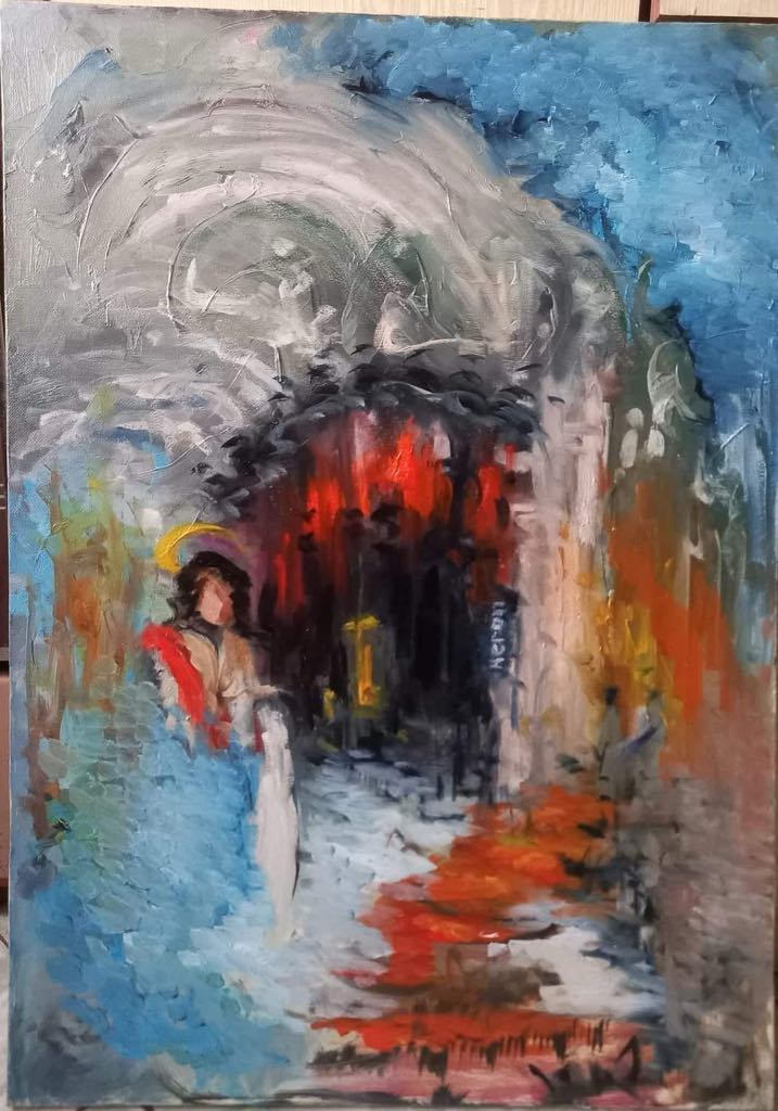პირველი ნახატები ბევრი იყო – ზოგი ტკივილისგან დაიხატა, ზოგი სიხარულმა გამოჭრა ფერებად. ახლა თითქმის ყველა სხვის კედლებზე ცხოვრობს… მხოლოდ ეს ერთი დარჩა ჩემთან – ტილოზე, სადაც მხოლოდ ერთი სიტყვაა ჩაწერილი: „დახატე“.