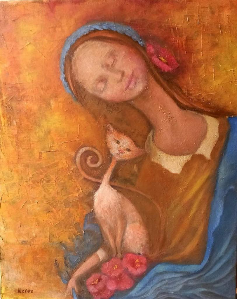 – ჩემი ფერები – ფორთოხლისფერის, წითლის, კადმი ყვითელის, ლიმონის, მარსის, ინდიგოსა და მოხეტიალე ლურჯის ნაზავია – თბილ „საჟასათან“ ერთად შერწყმული. ხშირად ტილოზე ტივტივებს უცხო (ჯერ სახელს ვერ ვარქმევ) – ჩემს შიგნით ჩაგუბებული სიჩუმე, სინანულის ფორმა, რომელსაც სითბო მოჰყვა. ჩუმად ზის ტილოზე…