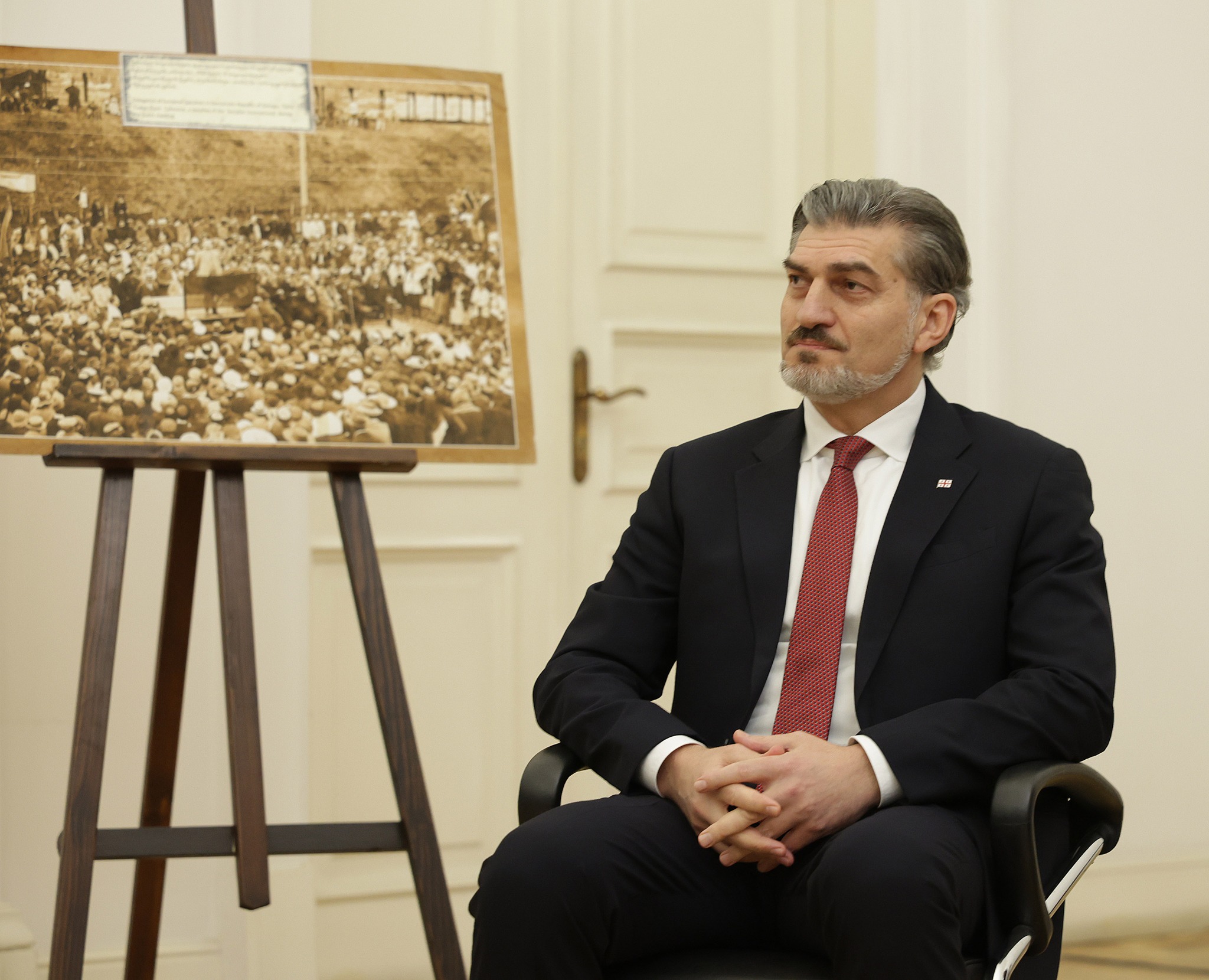 „დაახლოებით ერთი წლის წინ დავდე ფიცი ღვთისა და ერის წინაშე, რომ დავიცავდი კონსტიტუციას. ეს არის ჩვენი ძირითადი, უზენაესი კანონი, რომელსაც საქართველოს თითოეული მოქალაქე უნდა იცავდეს. მით უმეტეს დღეს ჩვენი ქვეყანა საკვანძო ეტაპს გადის, ჩვენი დამოუკიდებლობის აღდგენის შემდეგ ყველა ვხედავთ გარშემო სიტუაციას, გამოწვევებს და განსაკუთრებულად მნიშვნელოვანია კანონთან მიმართებაში თითოეული ინსტიტუციის და ასევე თითოეული მოქალაქის დამოკიდებულება. ვხედავთ როგორი შემოტევებია, პირდაპირი მნიშვნელობით კონსტიტუციის, კანონის დარღვევასთან დაკავშირებით , ამიტომაც იმ ადამიანებს,ვისაც ხელგვეწიფება, რომ დავიცვათ სახელმწიფო, სახელმწიფოს დაცვა პირველ რიგში ნიშნავს კონსტიტუციის დაცვას, ეს არის ჩვენი უზენაესი ვალდებულება. მინდა გიორგის და თითოეულ თქვენგანს კიდევ ერთხელ გისურვოთ წარმატებები“,- განაცხადა საქართველოს პრეზიდენტმა.