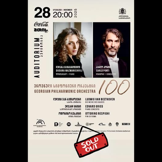 28 ნოემბერს, 20:00 საათზე, ეროვნული სიმფონიური ორკესტრის აუდიტორია ორკესტრის საიუბილეო სეზონს უმასპინძლებს. საუკუნის იუბილესადმი მიძღვნილ კონცერტს უდირიჟორებს სახელგანთქმული მსახიობის – სოფი ლორენის შვილი, კარლო პონტი უმცროსი.