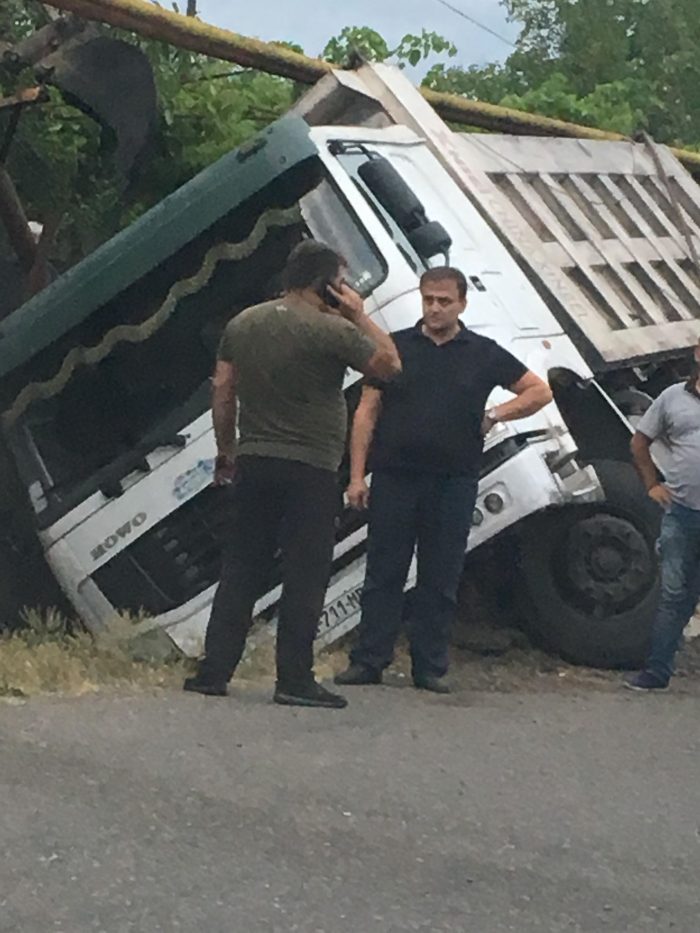 ზესტაფონში სატვირთო ამობრუნდა (ფოტო)