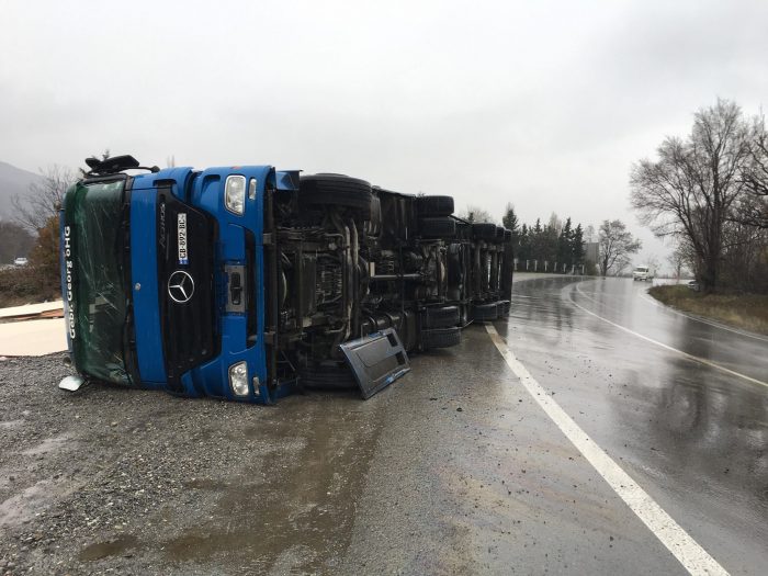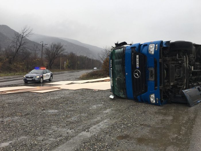 მცხეთასთან, მერსედესის მარკის სატვირთო ავტომობილი გადაბრუნდა. შემთხვევის შედეგად არავინ დაშავებულა.
