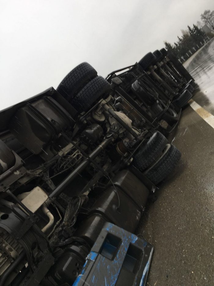 როგორც “კვირას” კორესპონდენტი შემთხვევის ადგილიდან იუწყება, ტრაილერმა მოხვევისას ტვირთის სიმძიმეს ვერ გაუძლო და გადაბრუნდა.