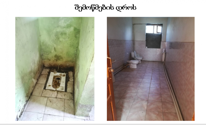 სხვა მძიმე დარღვევებთან ერთად, აუდიტის ხელმძღვანელმა კომიტეტზე გაასაჯაროვა ფოტოები, რომლებიც ასახავს სკოლაში არსებული სველი წერტილების მდგომარეობას მასწავლებლებისა და მოსწავლეებისთვის. აშკარაა, რომ მასწავლებლები სარგებლობდნენ სრულიად მოწესრიგებული, ხოლო მოსწავლეები მძიმე ანტისანიტარიის მდგომარეობაში მყოფი სველი წერტილებით. ფოტოები ასევე ასახავს, როგორი იყო ინფრასტრუქტურა შესწავლამდე და მის შემდეგ – მოკლე დროში როგორ აღმოფხვრა წლების განმავლობაში დაგროვილი პრობლემები სკოლამ.