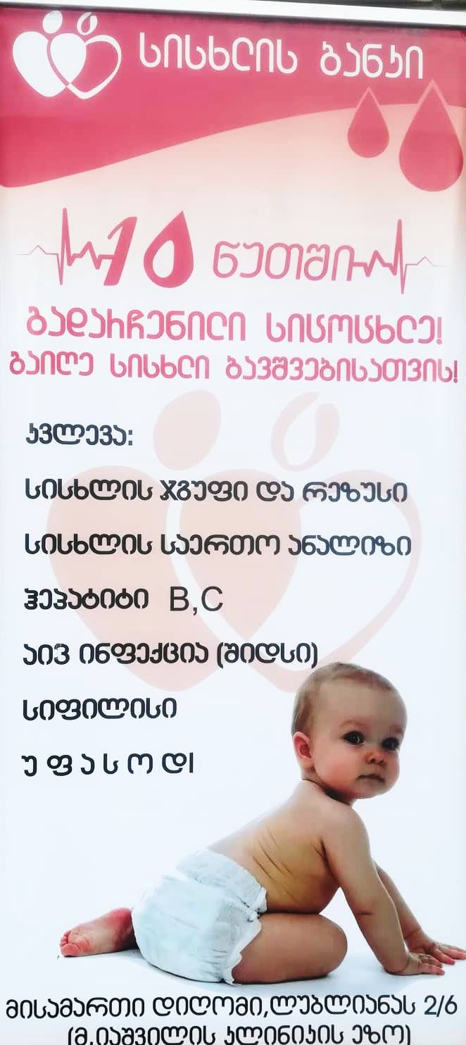 როგორც „კვირას“ ბაღდათის მერიიდან აცნობეს, დღესვე, დონორებს, აქციის ფარგლებში, უფასოდ ჩაუტარდათ შემდეგი ანალიზები: სისხლის ჯგუფი და რეზუსფაქტორი, ჰეპატიტი-C, B, აივ ინფექცია და სიფილისი.