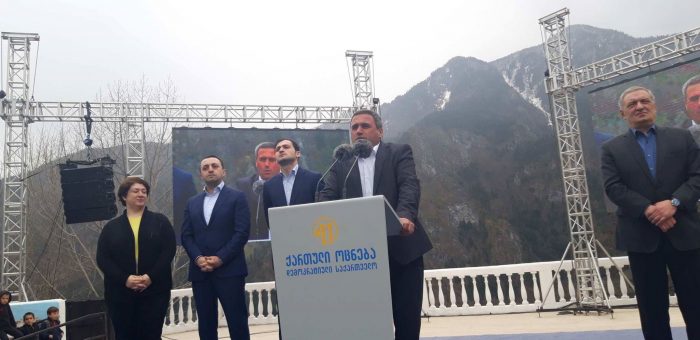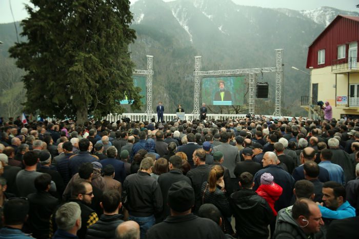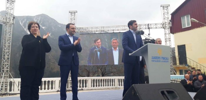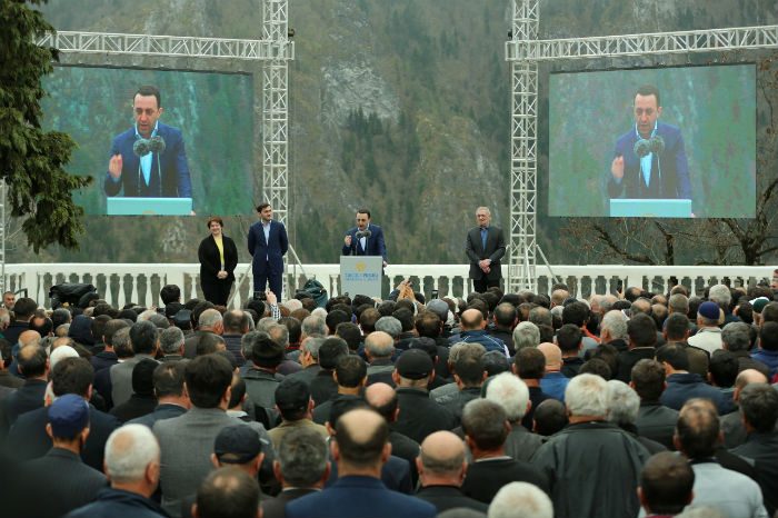 „ძალიან მიხარია, რომ დღეს, ჩვენს მეგობრებთან, ჩვენი გუნდის წევრებთან ერთად, აქ ვიმყოფები და წარმოგიდგენთ ძალიან ღირსეულ კანდიდატს, ვახტანგ ბერიძეს. მე მქონდა შესაძლებლობა, გავსაუბრებოდი მოსახლეობას. მიხარია, რომ ყველა თაობის წარმომადგენელს ვხედავ დღეს აქ შეკრებილს. ვხედავ უხუცესებს, ჩვენს ღირსეულ ხალხს, ვხედავ ჩვენს დედებს, ჩვენს ძმებს, ახალგაზრდებს ვხედავ, ჩვენს ბავშვებს ვხედავ, ჩვენს მომავალს ვხედავ. ვუყურებ რა ამ ადამიანებს თვალებში, მინდა გითხრათ, რომ ჩვენ მთავრობას გვაქვს სრული ვალდებულება და ვიღებთ პასუხისმგებლობას, რომ თქვენ ერთგულად გემსახურებით.