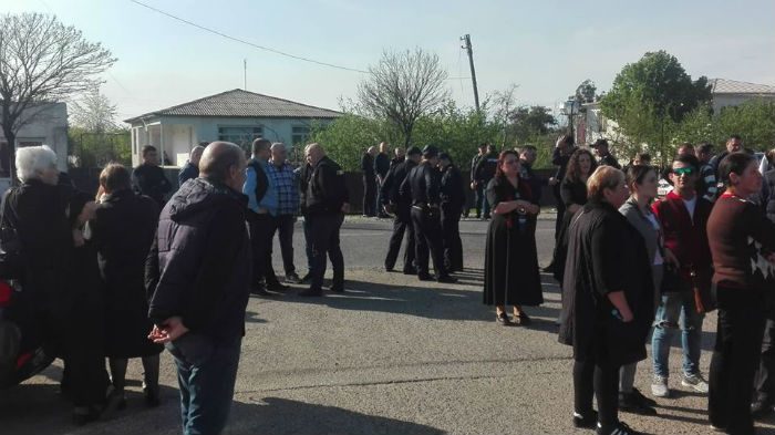 ზუგდიდის სამხარეო პოლიციასთან დაკავებული ბესიკ დგებუაძის ოჯახის წევრები აქციას მართავენ