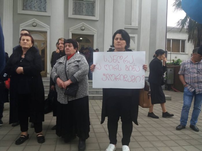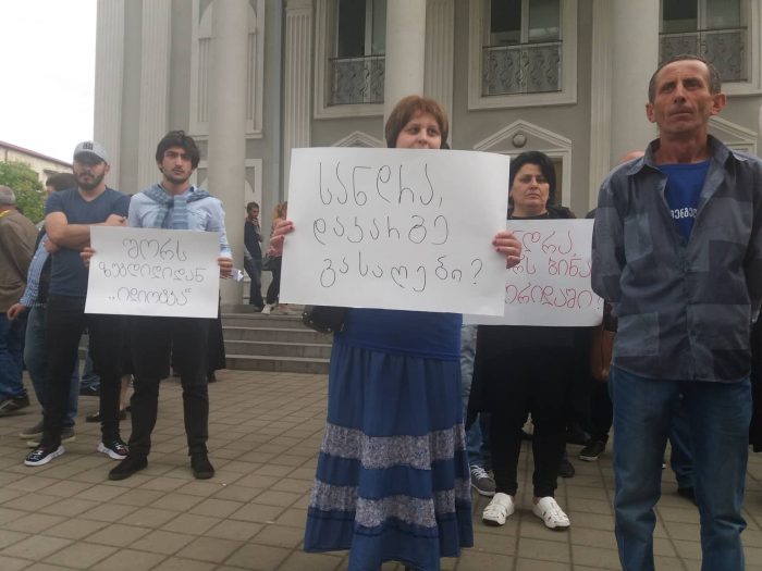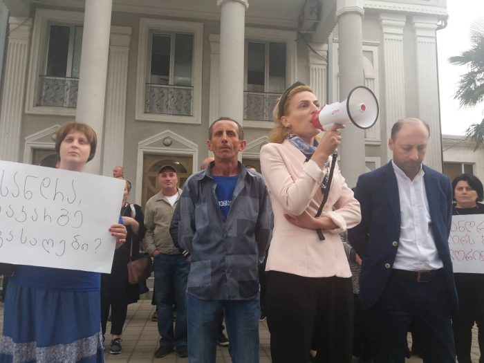გაერთიანებული ოპოზიციის ოფისთან ზუგდიდში მოსახლეობა საპროტესტო აქციას მართავს (ფოტო)