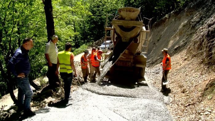 ხულოში კვატია-ოხორას საავტომობილო გზის ბეტონით მოწყობის სამუშაო მიმდინარეობს