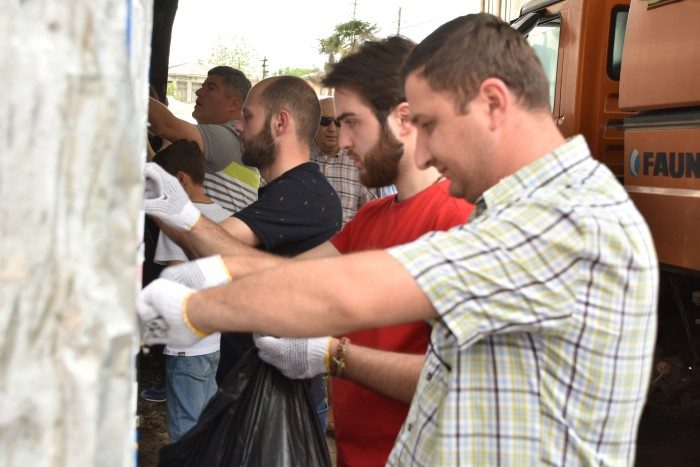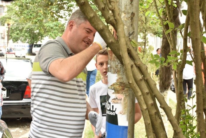 პლაკატების ჩამოხსნისა და ქალაქის გასუფთავების პროცესში “ზუგდიდდასუფთავების ცენტრიცაა” ჩართული.
