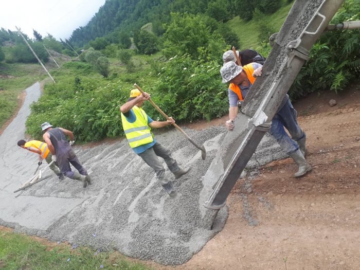გელაურში მისასვლელ გზაზე ბეტონის საფარის დაგება მიმდინარეობს