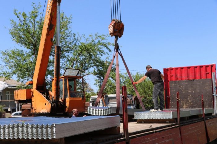 მარნეულში სტიქიით დაზარალებულებს თუნუქის სახურავები გადაეცათ