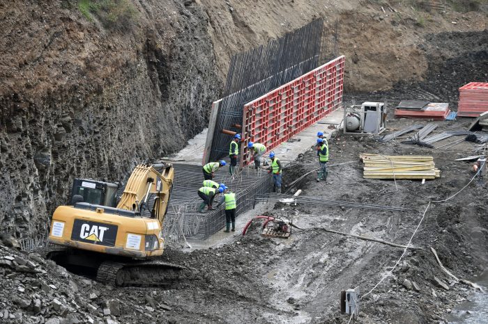 ფერდის გასამაგრებლად რკინა-ბეტონის ხიმინჯოვანი საყრდენი კედლის მშენებლობა მიმდინარეობს.