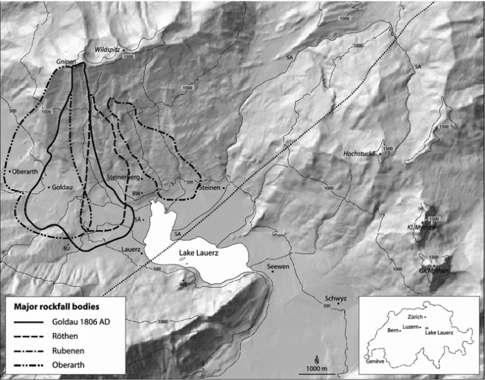 1806 წელი – ყველაზე საშინელი სტიქია ქვეყნის ისტორიაში: 1806 წლის 2 სექტემბერს ძლიერმა წვიმამ 35-40 მილიონი კუბური მეტრი კლდის მასა და ხრეში ჩამოიტანა ცენტრალური შვეიცარიის მთიდან. მეწყერი ჩამოწვა შვიცის კანტონში მდებარე სოფლებში: გოლდაუსა და როტენში. ნგრევის საერთო ფართობმა 6,5 კვადრატულ კილომეტრს მიაღწია. განადგურდა სამასზე მეტი საცხოვრებელი და კომერციული შენობა, დაიღუპა 437 ადამიანი.
