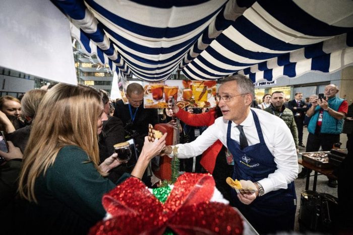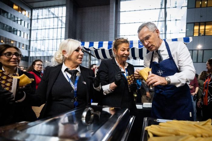 ნატოს გენერალურმა მდივანმა, იენს სტოლტენბერგმა ბრიუსელში, ალიანსის სათავო ოფისში ყველა, 4 ათასზე მეტი თანამშრომელი შეკრიბა და გლინტვეინითა და ბლინებით უმასპინძლა.