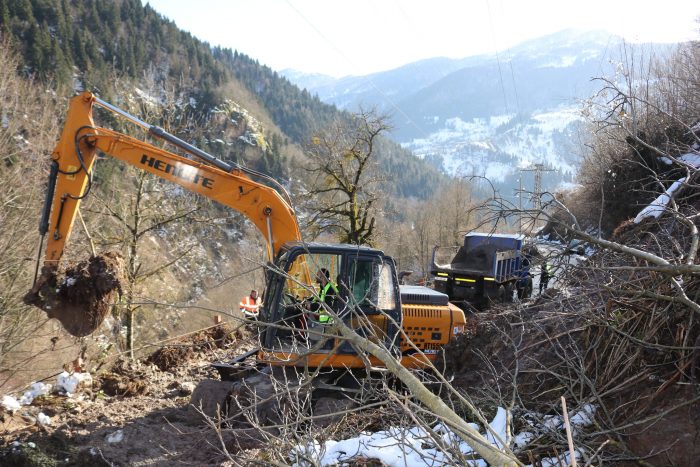 ხულოში სტიქიის შედეგად დამეწყრილი ადგილების სალიკვიდაციო სამუშაოები