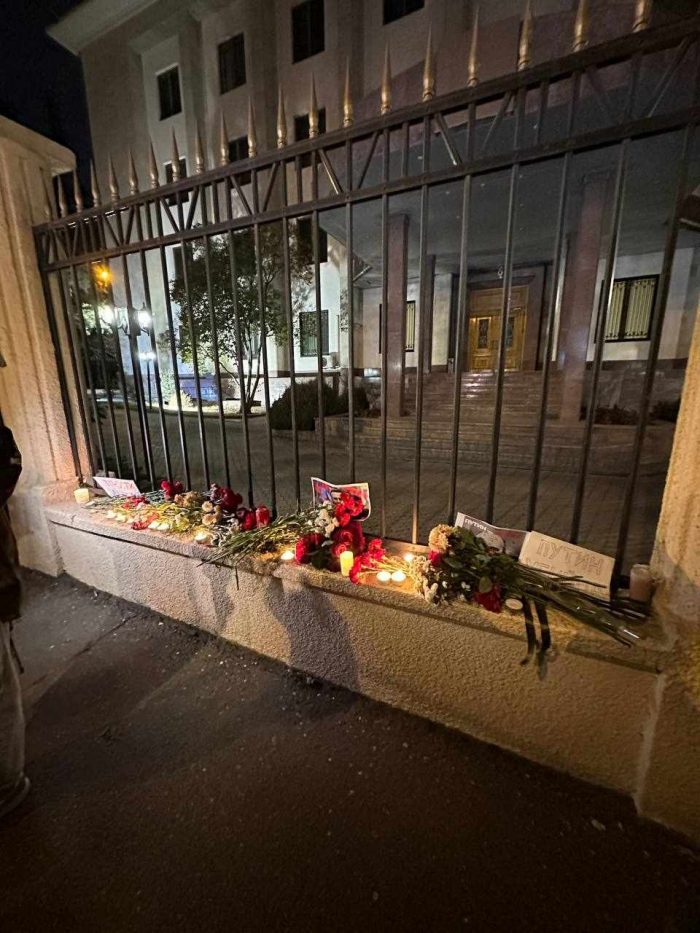 ხალხმა ადგილზე ყვავილები, პლაკატები, ნავალნის ფოტოები მიიტანა.