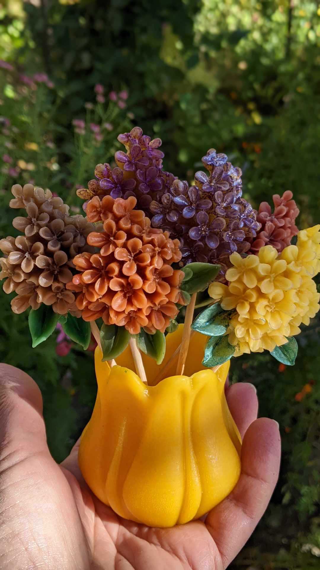 – ყველაზე მეტად ფიჭის სანთლები მიყვარს და ყველაზე მეტი შეკვეთაც მასზეა. ფიალებიც ძალიან მოსწონთ… პატარა ბეკეკოებიც ძალიან მიყვარს.
