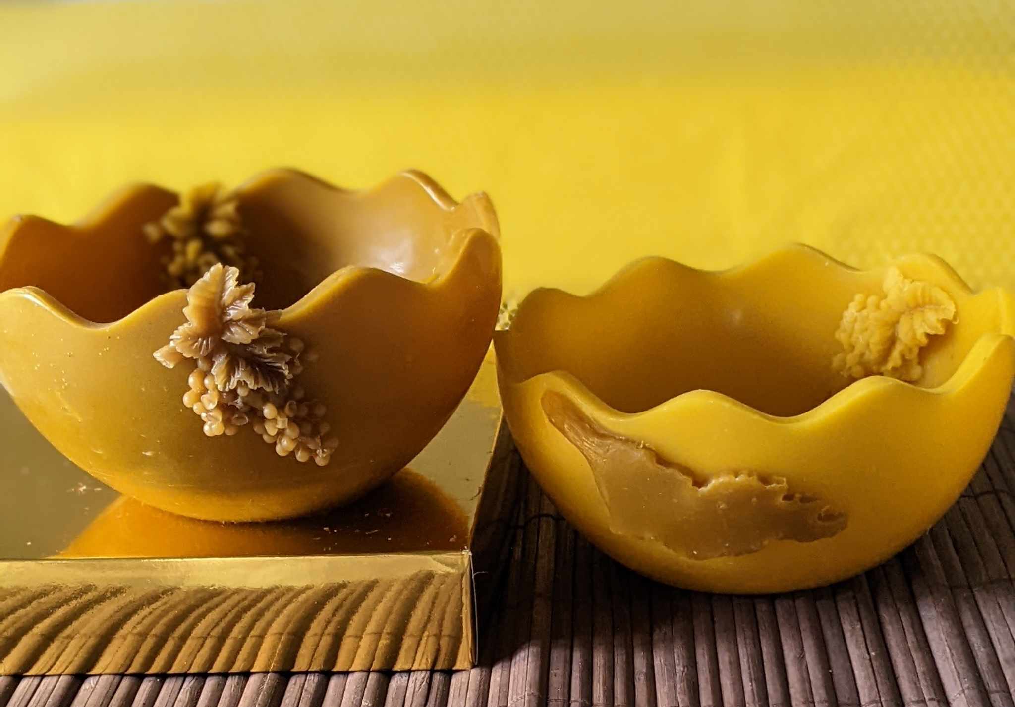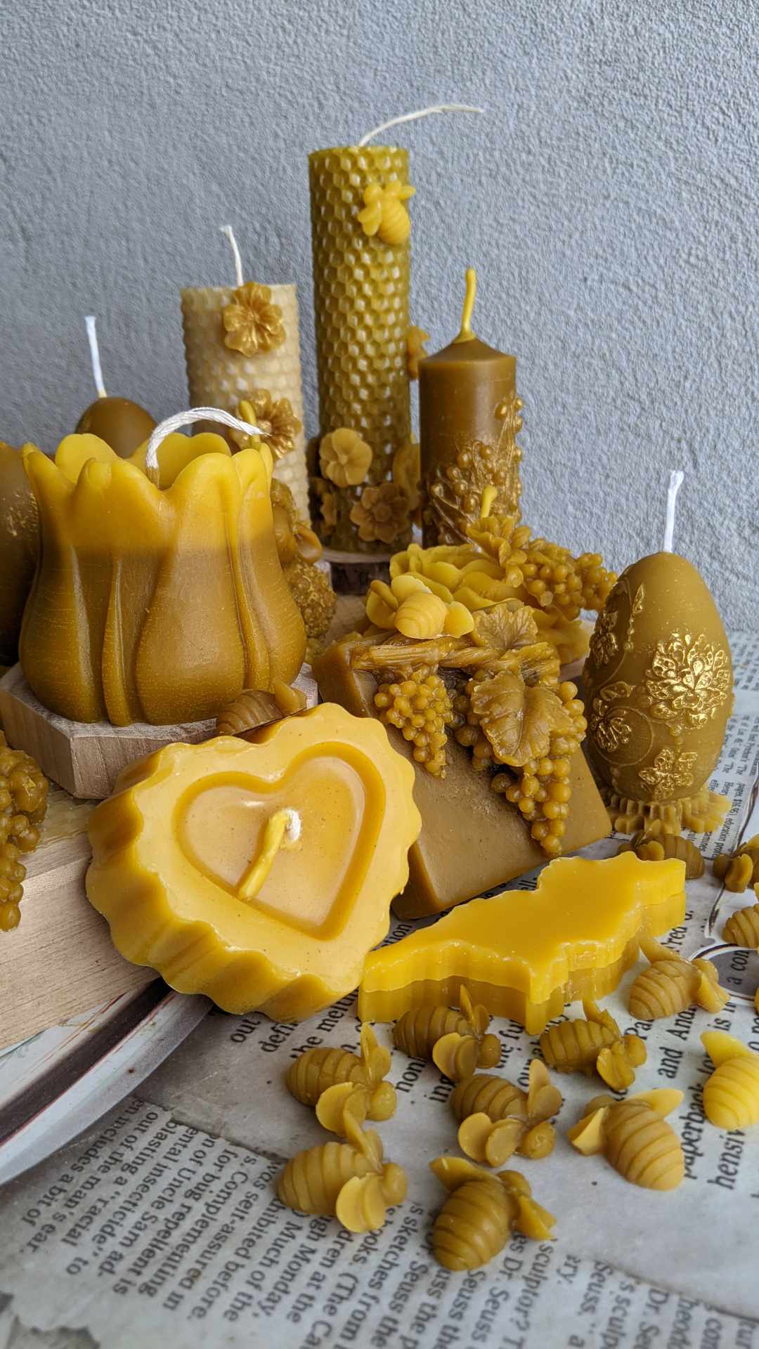 ფოტოებზე თვალის გადავლებაც საკმარისია, რომ რომ ვერ მოწყდეთ ნატურალური თაფლის სანთლისგან დამზადებულ თიხის მინიატურულ ქოთნებს, ვაზის და ქვევრის ორნამენტებით. ფუტკრების ცვილის და ფიჭის სანთლებს, ფიალებს…