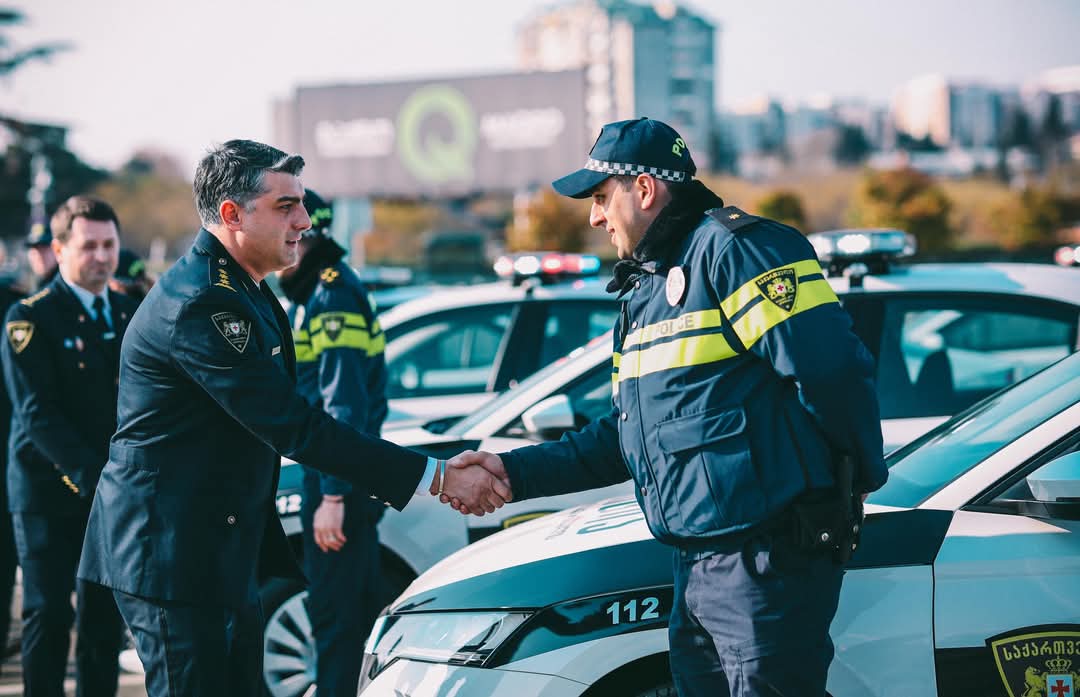„თანამედროვე სტანდარტების ავტოსატრანსპორტო საშუალებები საპატრულო პოლიციის დეპარტამენტის დირექტორმა ვაჟა სირაძემ, მოადგილესთან სერგი ბზიშვილთან, საპატრულო პოლიციის დეპარტამენტის თბილისის მთავარი სამმართველოს უფროსთან ლაშა ჯოხაძესთან და სხვა ხელმძღვანელ პირებთან ერთად დაათვალიერა და მათ ტექნიკურ მახასიათებლებს გაეცნო.